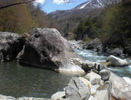共同温泉・新穂高の湯です。新穂高ロープウェイからの帰り道、蒲田トンネル直前にあります。 橋を渡って行くんですけど、橋の上から温泉が丸見えです。さすが共同温泉。結構有名な温泉みたいです。 駐車場から橋を渡って、階段を降りるとすぐに露天風呂があります。料金は寸志となっているので、郵便ポストみたいなところに300円ほどいれてみました。 下に降りてみると先客が1名いらっしゃいました。気にせずに脱衣所で全裸になり、いざ入浴! 結構ぬるめです。温泉の下は砂利がつめてあるので意外に痛い。先客は結構すぐにでていってしまったので、またしても貸し切り状態です。誰か橋からのぞいてるんじゃないかと、ドキドキしてましたwてか普通に道路からも見えますしね。 こちらも相変わらず川がすぐ隣にあります。大自然の中の温泉です。温泉自体が結構ぬるめなのでちょっと寒かった。もう少しあったかい季節になると気持ちいいかもしれないですね。 それでも、旅館とかではない共同温泉にはいるというのが野性味あふれていていいではないですかw |